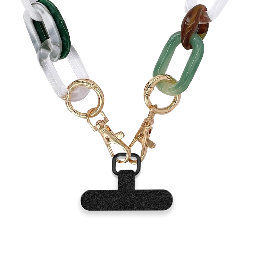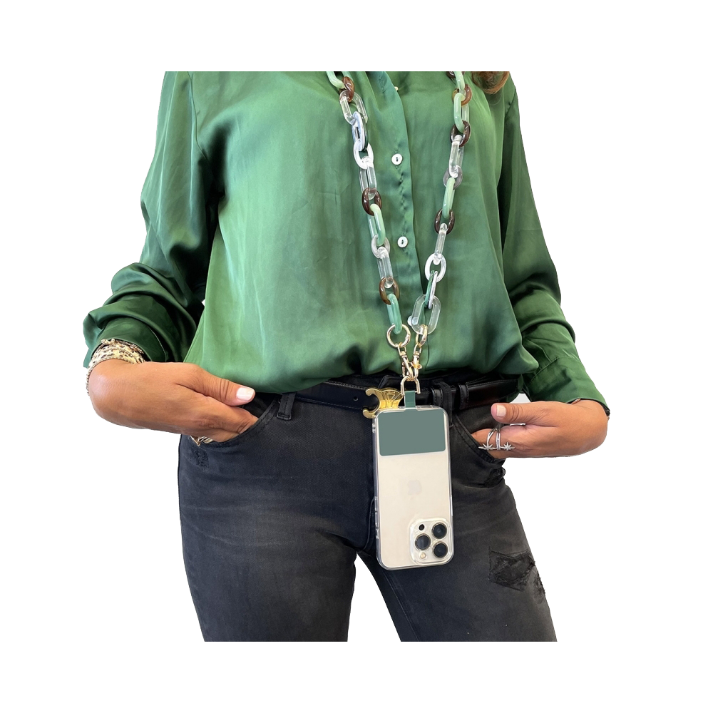 Cette chaîne vendue avec un pad universel à placer entre un téléphone et une coque de protection vous permettra de porter votre téléphone comme un sac ou autour du cou tout en gardant les mains libres.