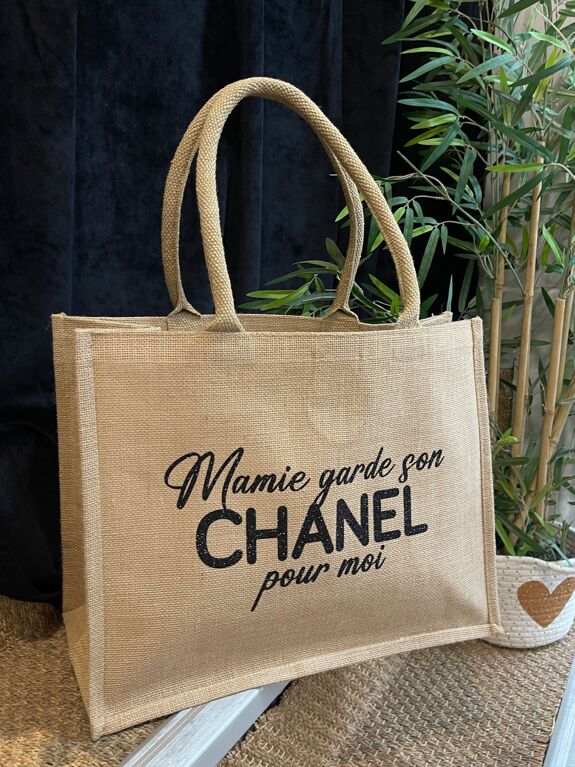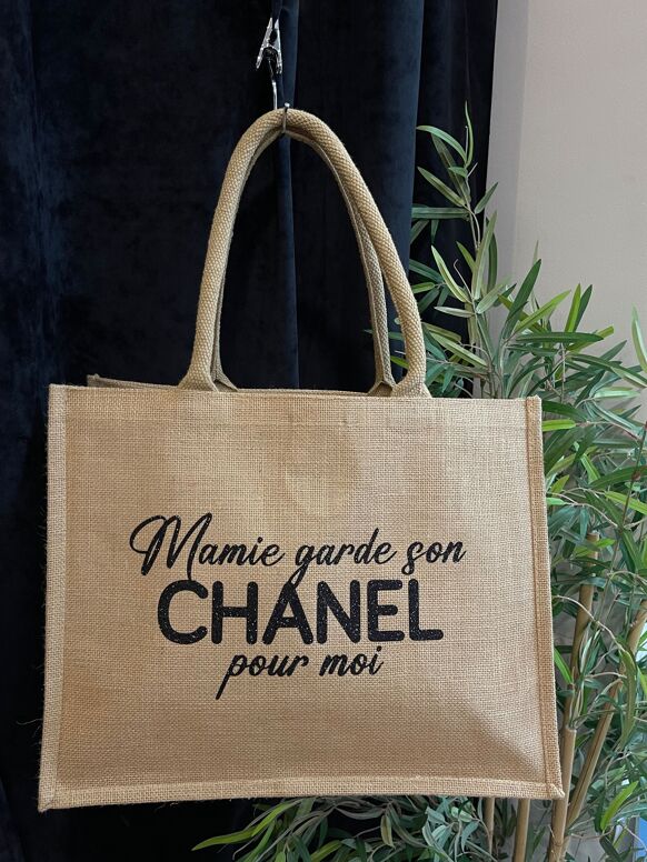 Grand cabas jute naturel "Mamie garde son Chanel pour moi"