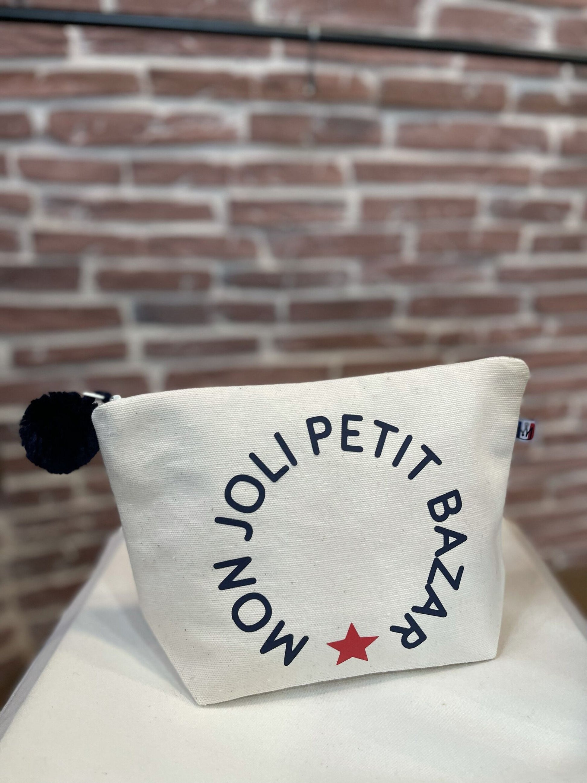 Trousse de toilette Ecru "Mon joli petit bazar"